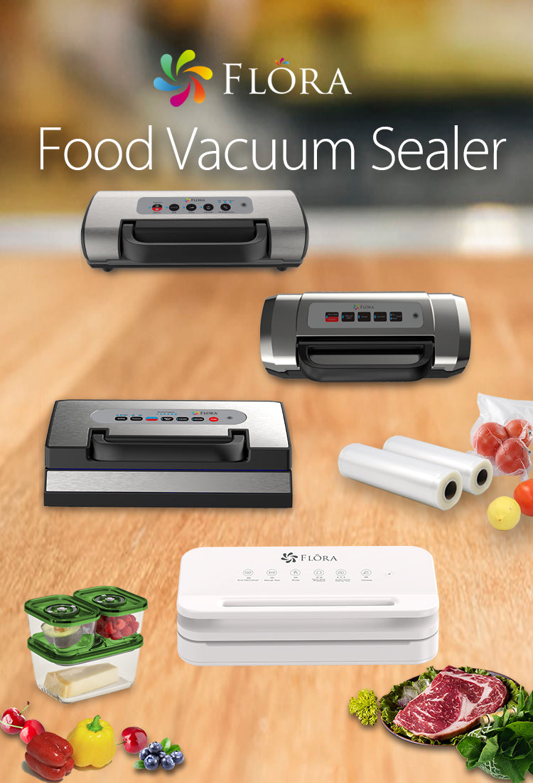 Flora Food Vacuum Sealer Machine-FL-FVS-5199,3-in-1 Dry/Moist/Canister | Pulse Control & Locking Handle System, BPA-Free Precision Sealing with Compact Storage Design for Meat, Meal Prep, Sous Vide