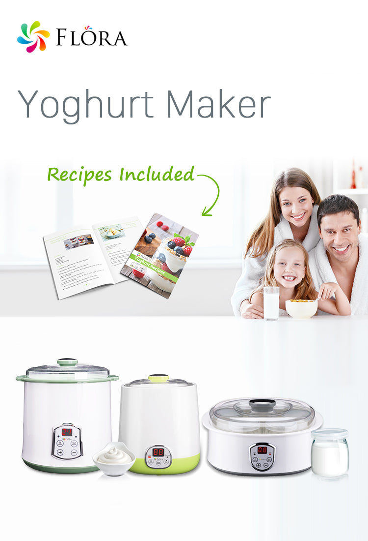 Flora Yoghurt Machine-Yogurt Maker Machine with 2L Capacity Jar-Electric Automatic- -Home Made Yoghurt Strainer-Fermented Curd Maker-Kitchen Tool for Rice Wine DIY Food Grade-FL-YME-120