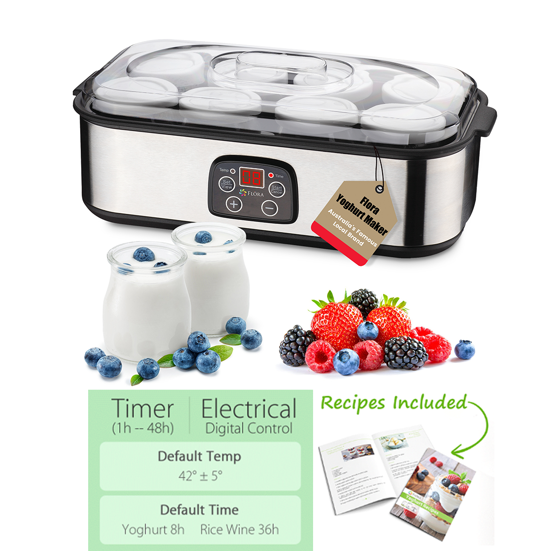 Flora Yoghurt Machine-Yogurt Maker Machine with 2L Capacity Jar-Electric Automatic- -Home Made Yoghurt Strainer-Fermented Curd Maker-Kitchen Tool for Rice Wine DIY Food Grade-FL-YME-120