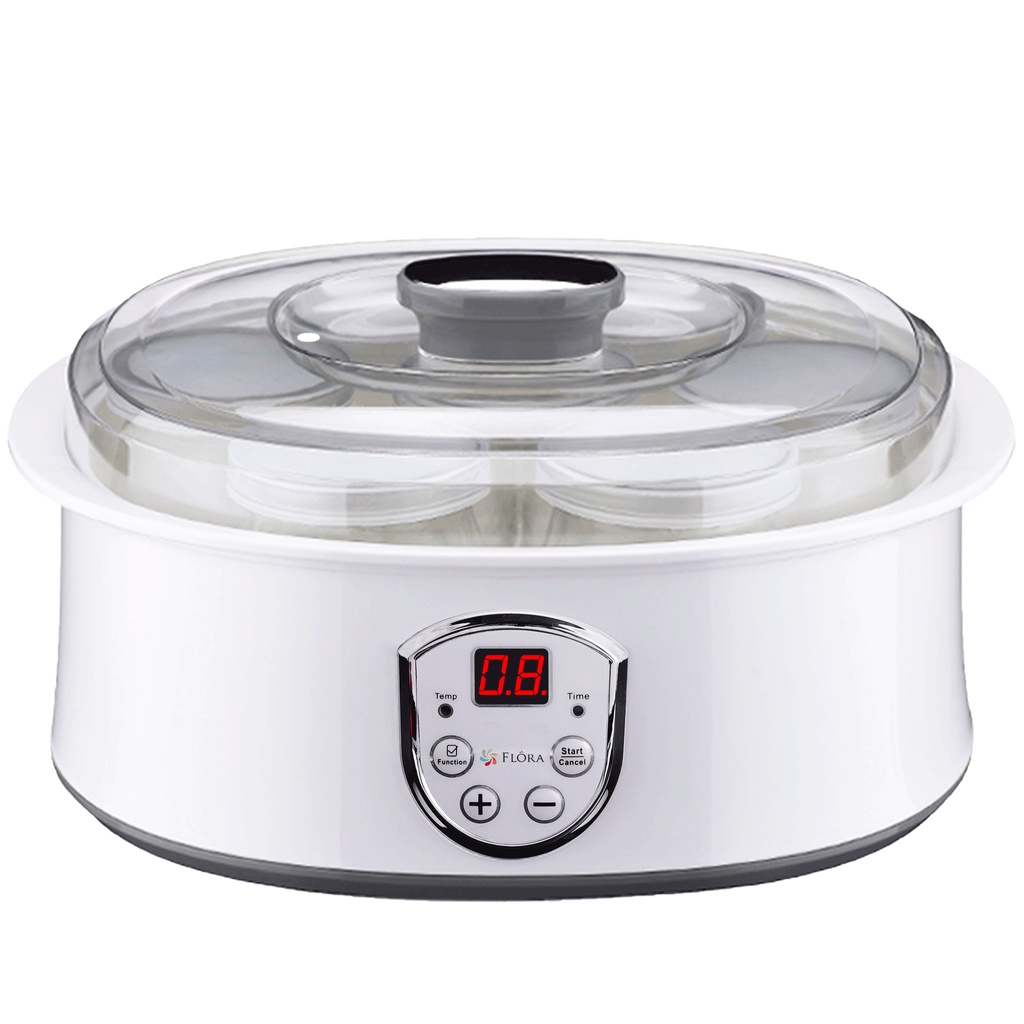 The Flora Yoghurt Maker is an appliance designed to make homemade yoghurt with ease and convenience.