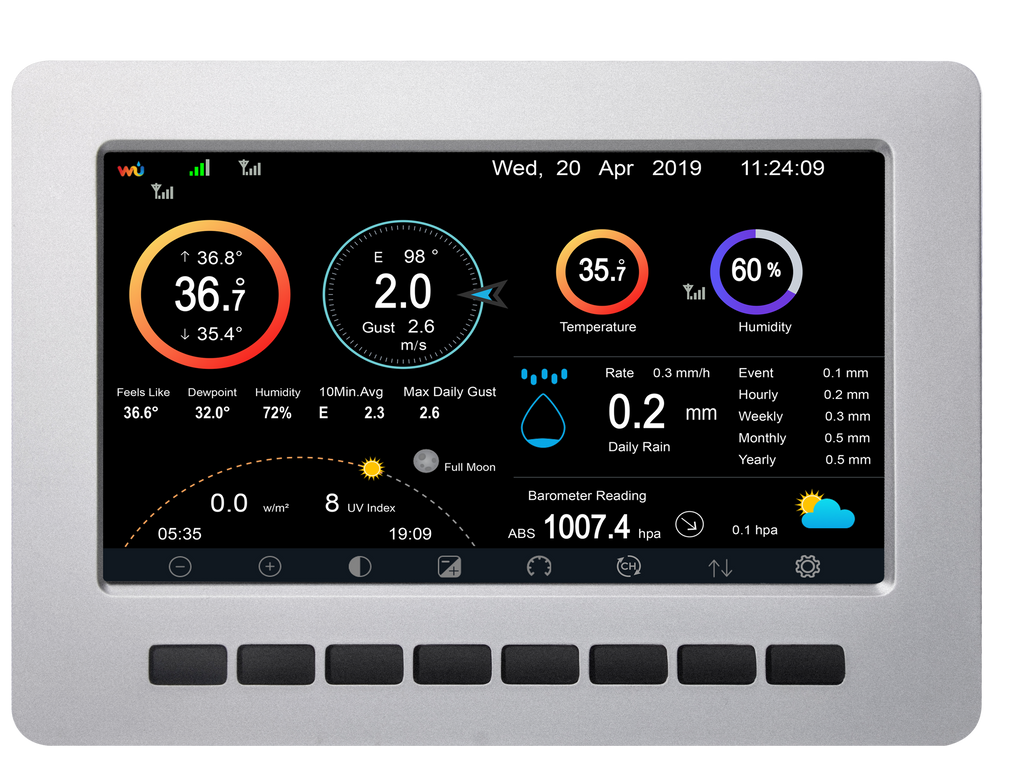 The console conssly to your weather station sensors, delivering real-time updates and ensuring that you always have accurate and up-to-date weather information. With user-friendly controls and a sleek, modern design, this console makes weather monitoring intuitive and efficient.